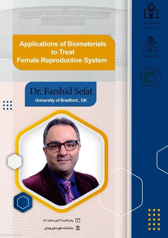 با عنایت به هماهنگی های انجام شده، جناب آقای دکتر فرشید صفات، از اساتید شهیر ایرانی شاغل در دانشگاه بردفورد کشور انگلستان، برنامه سخنرانی خود را در یک سمینار علمی، با عنوان "Application of Biomaterials to Treat Female Reproductive System"، روز پنج شنبه مورخ ۲۱ تیر ماه ۱۴۰۳ از ساعت ۱۲ و در محل سالن اجتماعات دانشکده داروسازی به صورت حضوری، انجام خواهند داد.